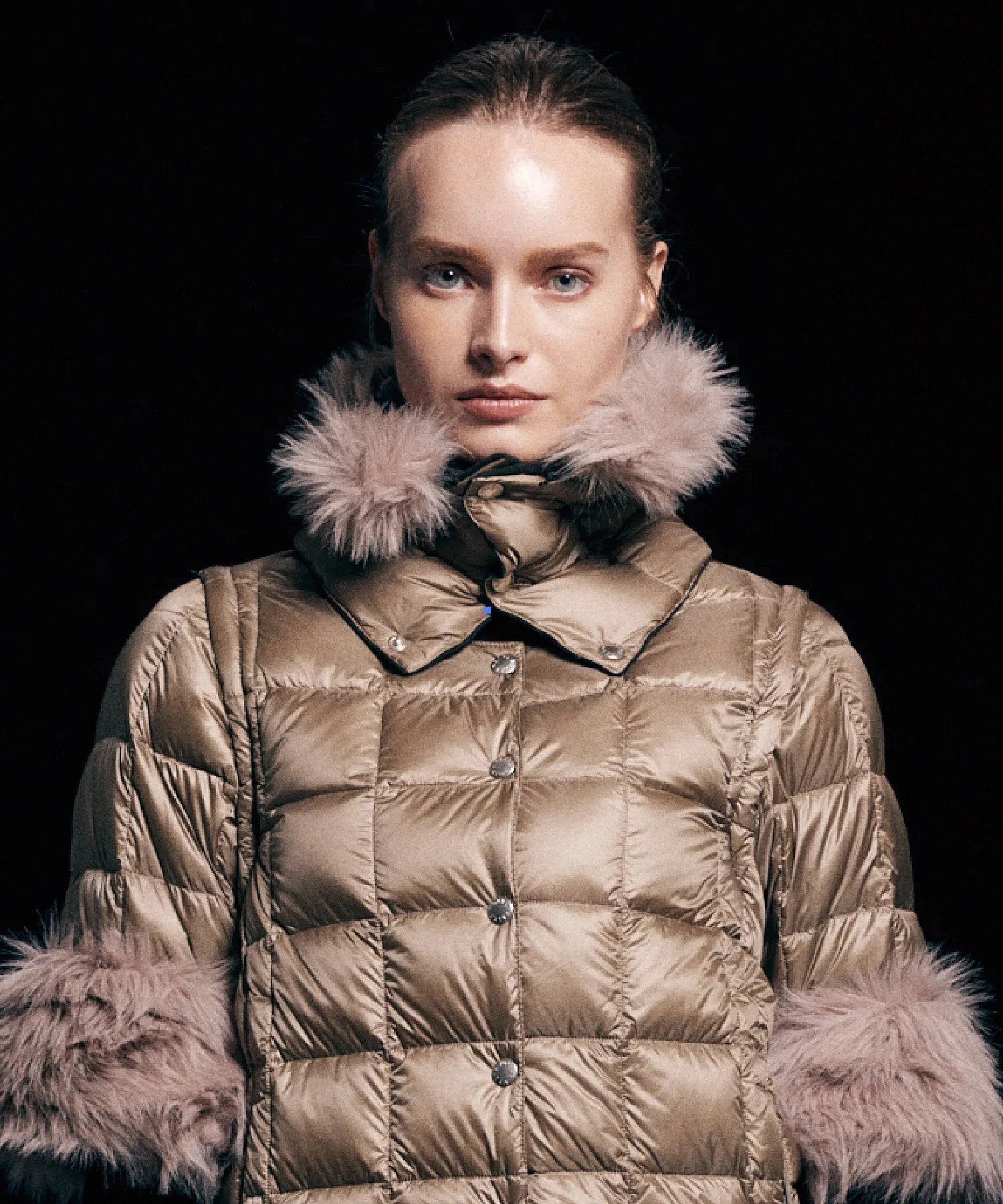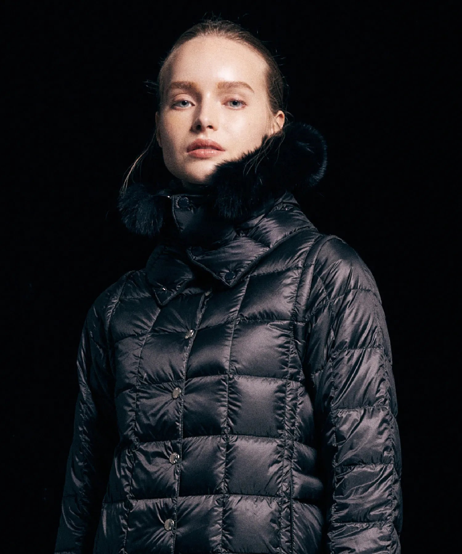 ダウンは天然由来の素材であるため、稀に濃い色の羽が混入することがあり、表面に透けて見える場合があります。
